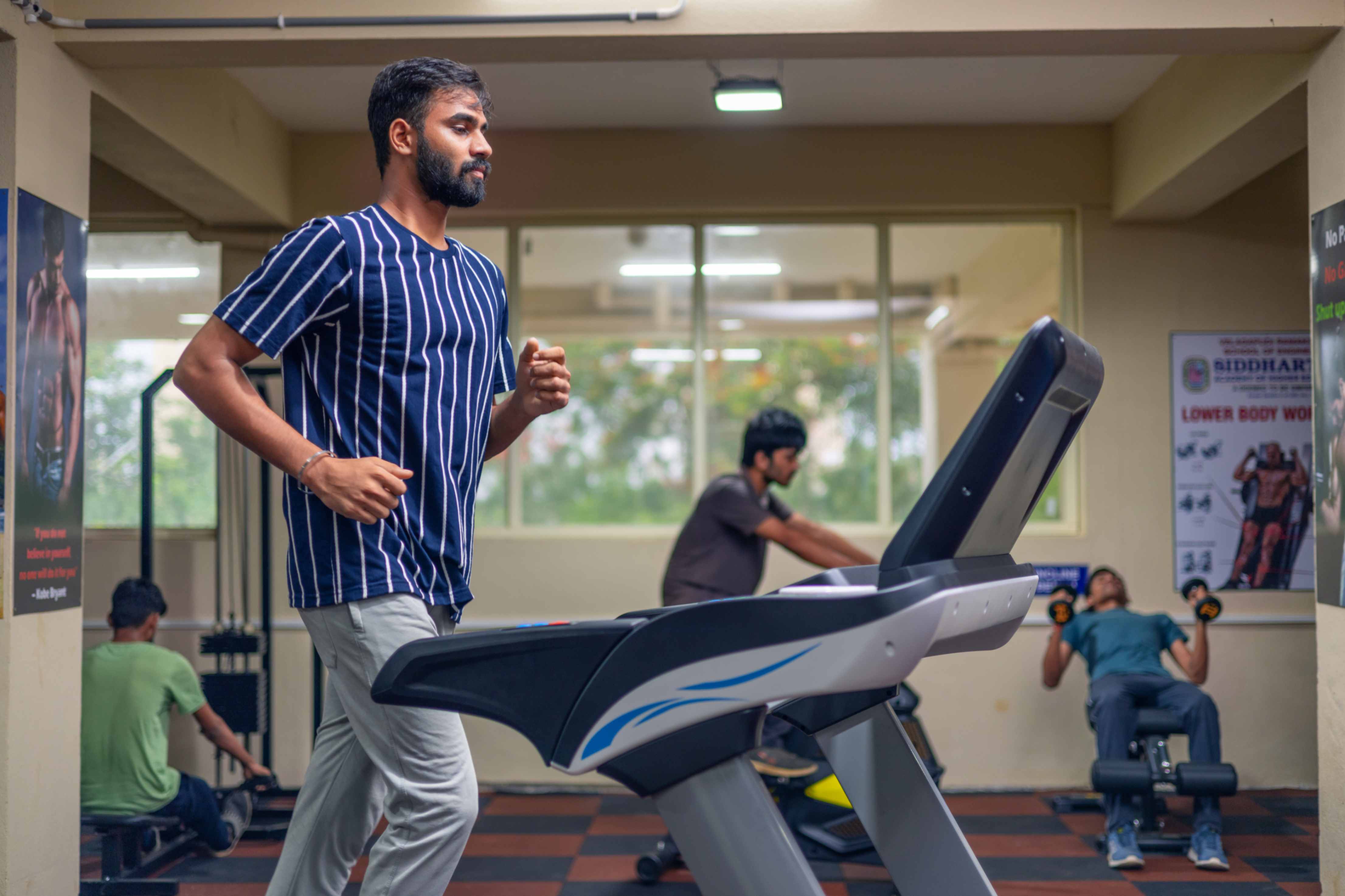 Gymnasia are available at the department of physical education and in the women’s hostel. Cardio exercises equipment such as cross trainer, treadmill are available at Girls’ hostel.